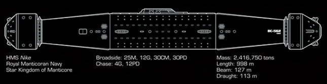 A second alternative pursued by the Royal Manticoran Navy resulted in the Nike-class, with the intention of recasting the battlecruiser as a "generalist" warship capable of withstanding the transformed reality of naval combat.